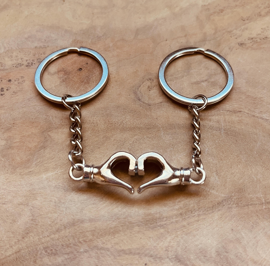 Best Friends Keychain Set of 2 Magnetic Hand Heart Keychains Friendship Gift, Bag Charms, BFF