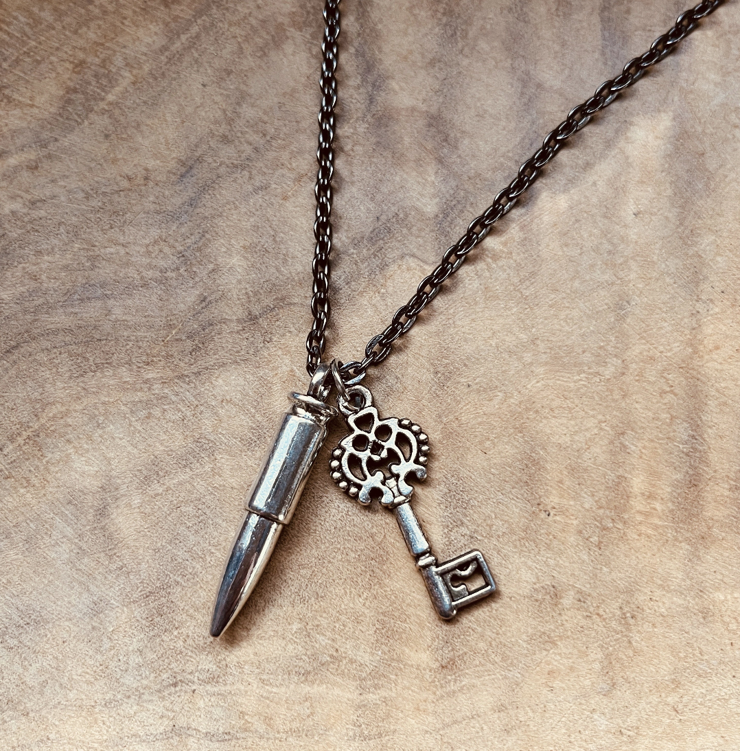 Perfect for those drawn to distinctive jewelry with a story, this bullet necklace works beautifully as a unisex piece and can be styled casually or as a standout accent.