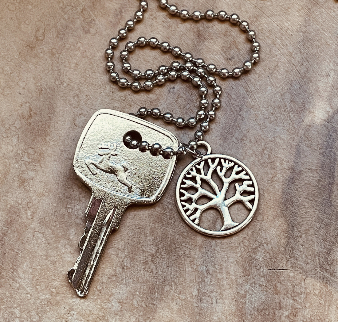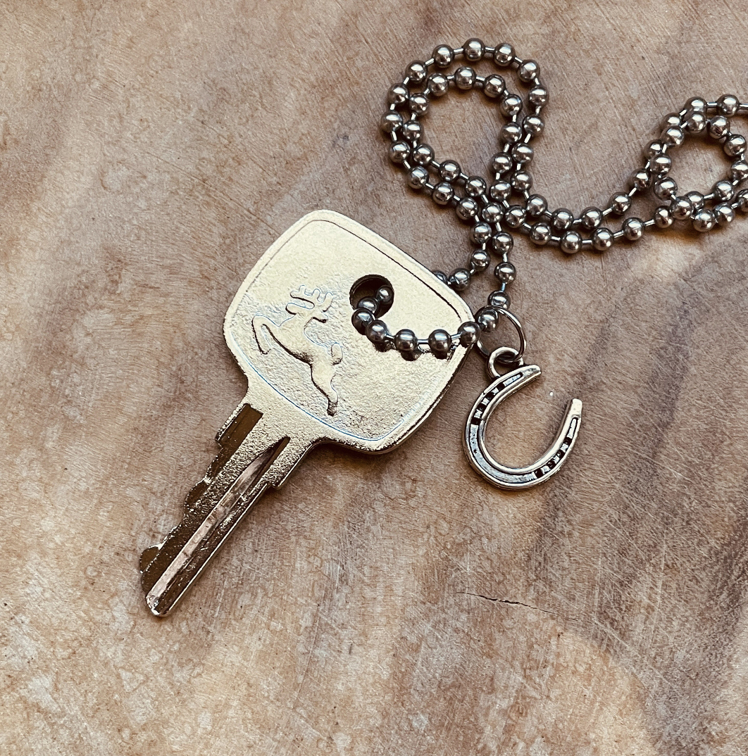 This piece features an authentic vintage John Deere tractor key, transformed into a unique necklace or keychain—your choice. Each key has the classic John Deere deer logo stamped crisply into the metal, making it a standout accessory for farmers, tractor lovers, and anyone who appreciates rugged, machinery-inspired jewelry.